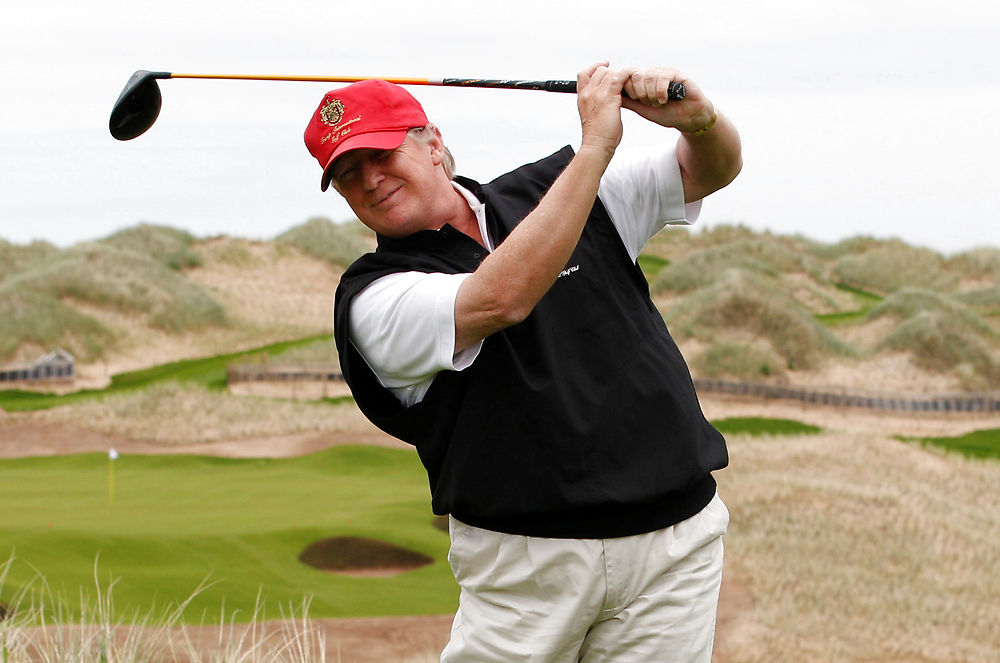 U.S. property magnate Donald Trump practices his swing at the 13th tee of his new Trump International Golf Links course on the Menie Estate near Aberdeen, Scotland, Britain June 20, 2011. To match Special Report USA-ELECTION/TRUMP-GOLF REUTERS/David Moir/File Photo