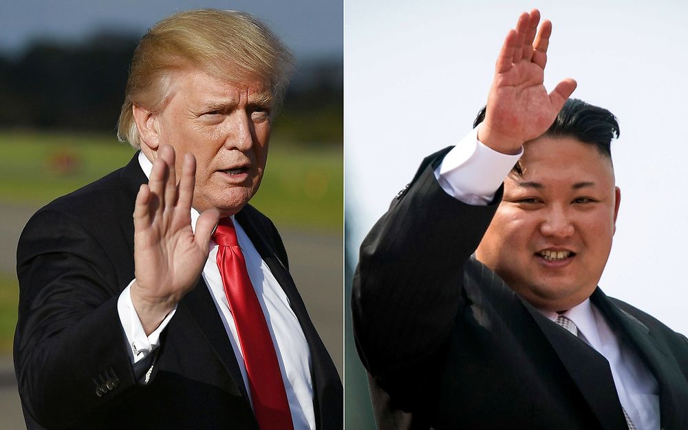 (FILES)(COMBO) This combination of pictures created on October 1, 2017 shows, US President Donald Trump at Morristown, New Jersey, Municipal Airport on September 15, 2017; and North Korean leader Kim Jong-Un waving following a military parade in Pyongyang on April 15, 2017. US President Donald Trump declared North Korea a state sponsor of terrorism on November 20, 2017, adding Kim Jong-Un's nuclear-armed pariah regime to a short blacklist of targeted regimes. "Should have happened a long time ago. Should have happened years ago, " Trump declared, announcing the designation at the start of a White House cabinet meeting. / AFP PHOTO / MANDEL NGAN AND ED JONES