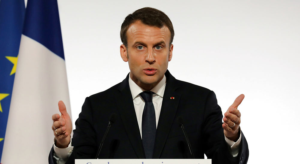 French President Emmanuel Macron delivers a speech during the International Day for the Elimination of Violence Against Women, at the Elysee Palace in Paris, France, November 25, 2017. REUTERS/Ludovic Marin/Pool