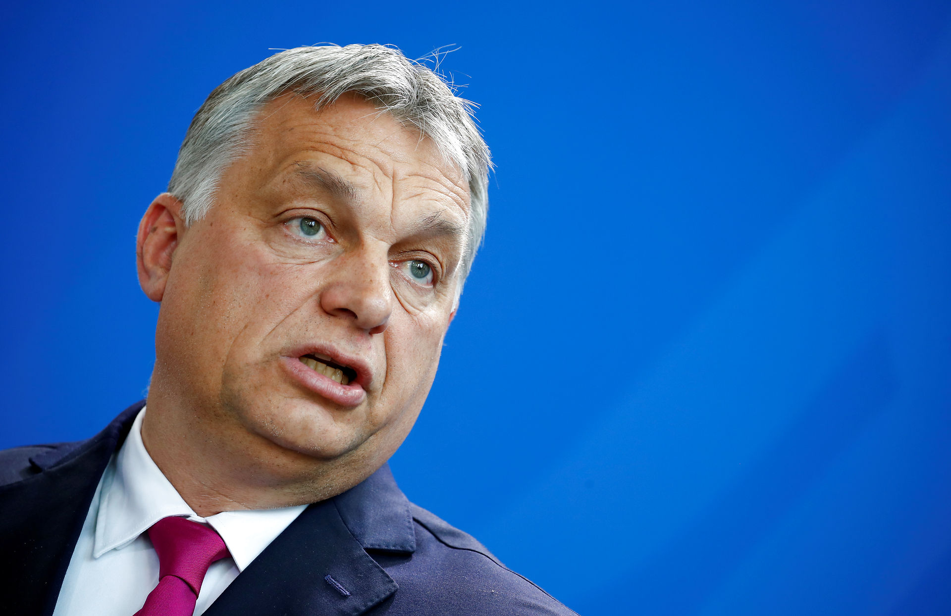FILE PHOTO: Hungarian Prime Minister Viktor Orban talks to the media after a meeting with German Chancellor Angela Merkel in Berlin, Germany, July 5, 2018. REUTERS/Axel Schmidt/File Photo