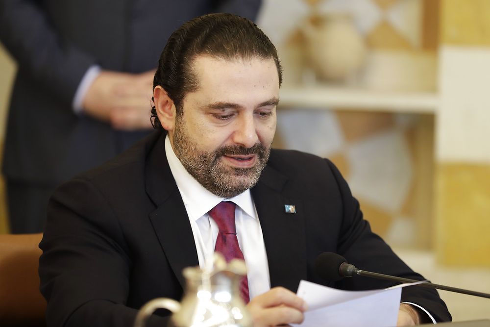 Lebanese Prime Minister Saad Hariri attends a cabinet meeting at the presidential palace of Baabda, east of the capital Beirut, on December 5, 2017. / AFP PHOTO / JOSEPH EID