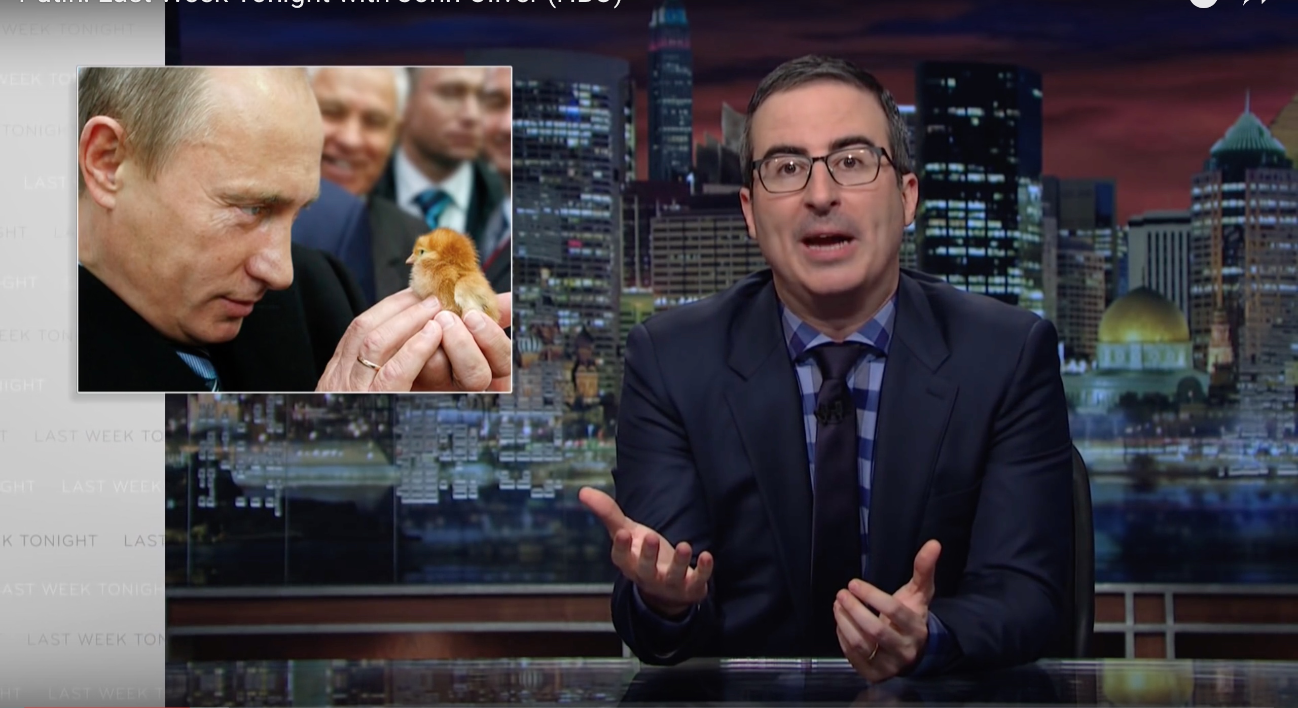 TV-satire. Komikeren og journalisten John Oliver er fuldkommen uforlignelig i sin evne til at gøre os klogere og underholde os på én og samme tid. Han tager sig endda god tid til det, hvilket man ikke ser så tit længere. Se denne her analyse af Putins magt og tråde til USA, der er sjovere end et afsnit af Seinfeld, mere kompleks end en orientering af Tage Baumann og lettere at forstå end Totte-bøgerne. Det er genialt.