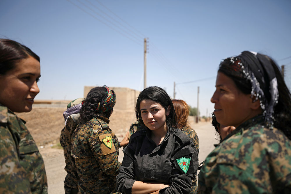 Syrian Democratic Forces (SDF) female fighters gather at the eastern outskirts of Raqqa city, Syria June 7, 2017. Picture taken June 7, 2017. REUTERS/Rodi Said