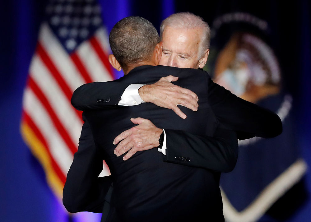 U.S. President Barack Obama hugs Vice-President Joe Biden as Biden's wife Jill looks on after Obama delivered a farewell address at McCormick Place in Chicago, Illinois, U.S. January 10, 2017. REUTERS/John Gress