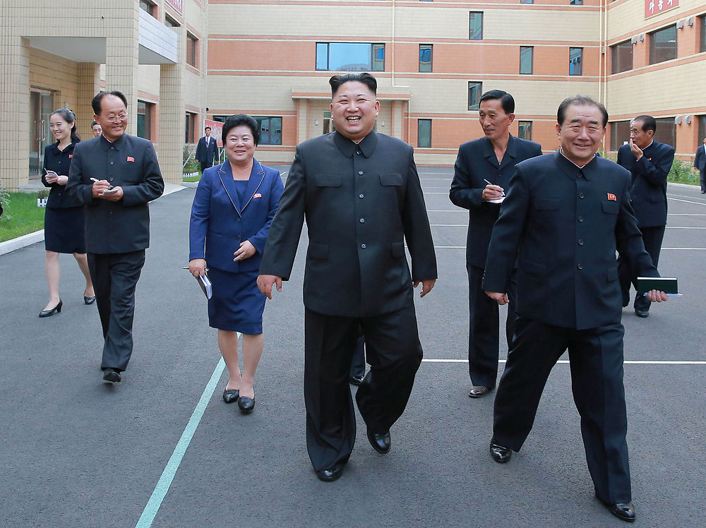REFILE - ADDING THE NAME OF THE FACTORY North Korean leader Kim Jong-Un visit Ryuwon Footwear Factory in this undated photo released by North Korea's Korean Central News Agency (KCNA) in Pyongyang on October 19, 2017. KCNA/via REUTERS ATTENTION EDITORS - THIS IMAGE WAS PROVIDED BY A THIRD PARTY. REUTERS IS UNABLE TO INDEPENDENTLY VERIFY THIS IMAGE.NO THIRD PARTY SALES. SOUTH KOREA OUT.NO RESALES.NO ARCHIVES