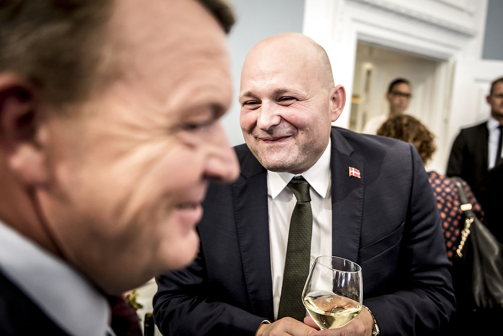 Torsdag den 17. august 2017 kl. 16.00 er statsminister Lars Løkke Rasmussen (V) og ligestillingsminister Karen Elleman (V) værter ved en reception i Statsministeriet med repræsentanter fra LBGTI-miljøet, politikere og organisationsfolk I anledning af Pride-ugen I København. Statsminister Lars Løkke Rasmussen (V) nyder en tår at drikker sammen med justitsminister Søren Pape Poulsen (C). Tidligere på ugen inviterede statsminister Lars Løkke Rasmussen danskerne med ud på en fælles løbetur under navnet "Run with Pride" som foregik ved og omkring Marienborg.. (Foto: Mads Claus Rasmussen/Scanpix 2017)