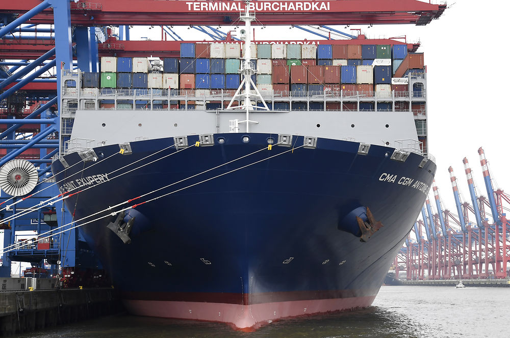 Container ship CMA CGM Antoine de Saint Exupery is moored at the loading terminal in the port of Hamburg, Germany March 15, 2018. REUTERS/Fabian Bimmer