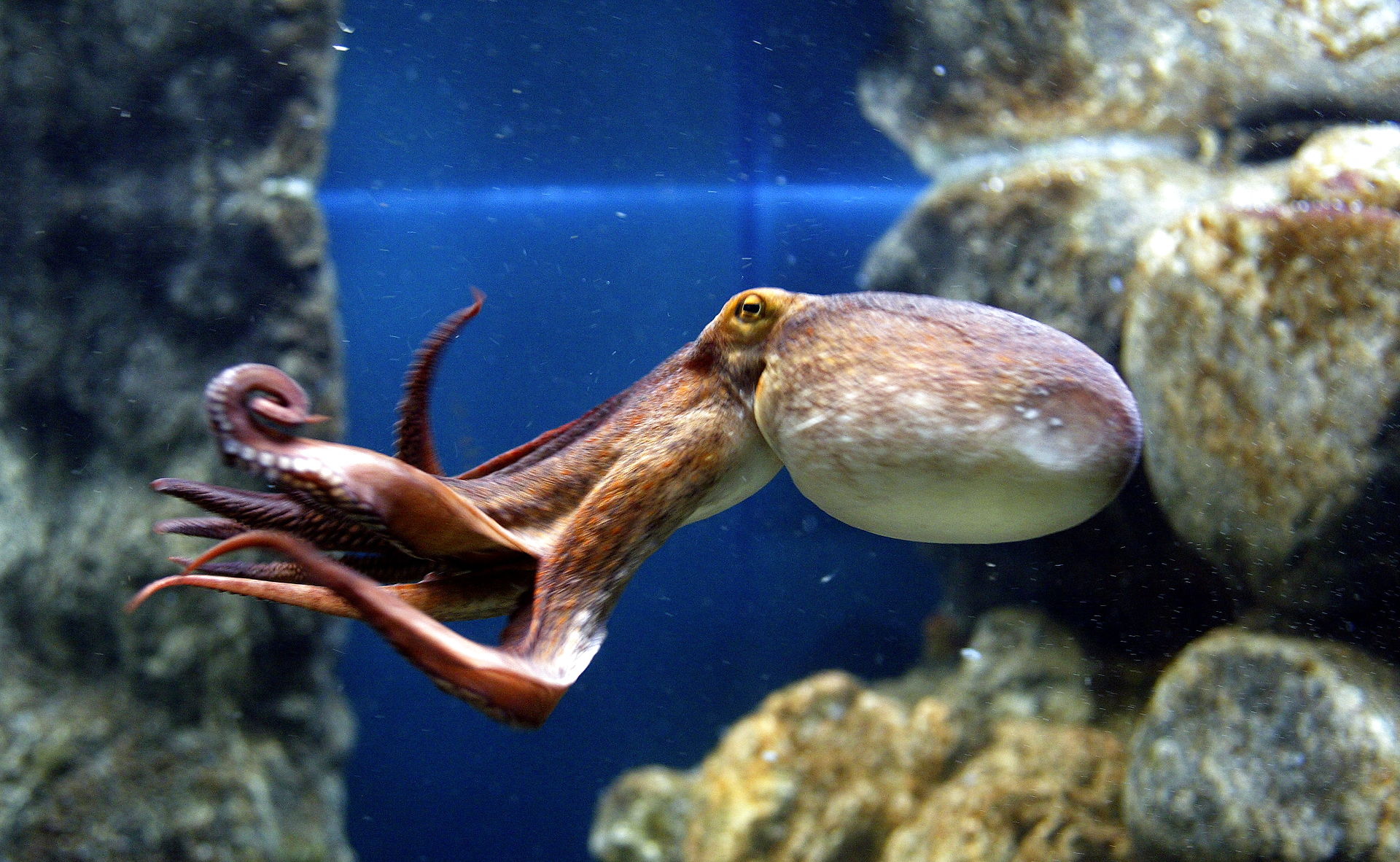 I Danmarks Akvarium findes en klog blæksprutte. Den kan skrue låget af et syltetøjsglas og spise indholdet; en levende krabbe....