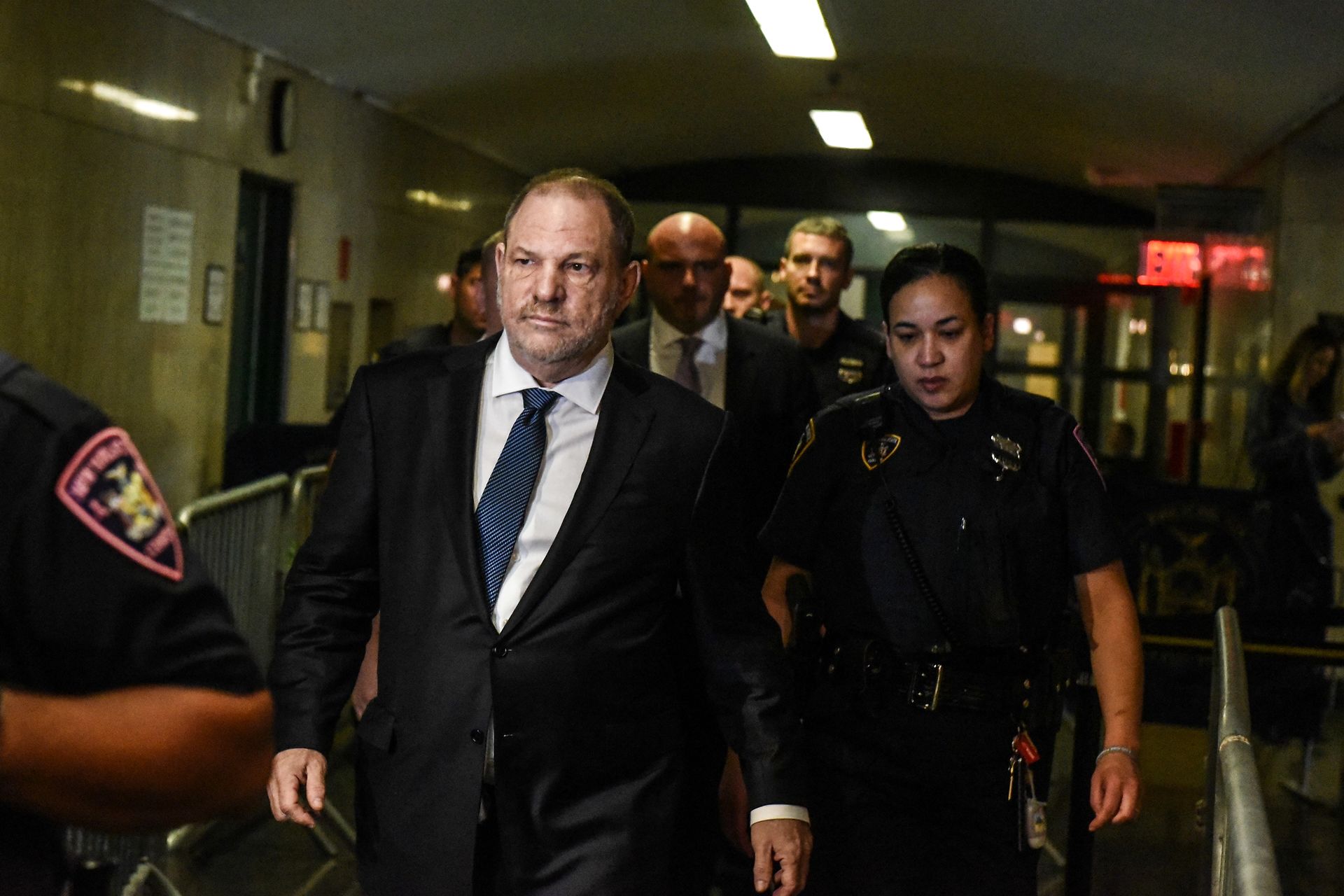NEW YORK, NY - OCTOBER 11: Harvey Weinstein arrives at New York State Supreme Court on October 11, 2018 in New York City. According to reports, one of the counts against Weinstein, involving Lucia Evans, has been dropped because investigators found a written account of the encounter that suggests it may have been consensual. Stephanie Keith/Getty Images/AFP == FOR NEWSPAPERS, INTERNET, TELCOS & TELEVISION USE ONLY ==