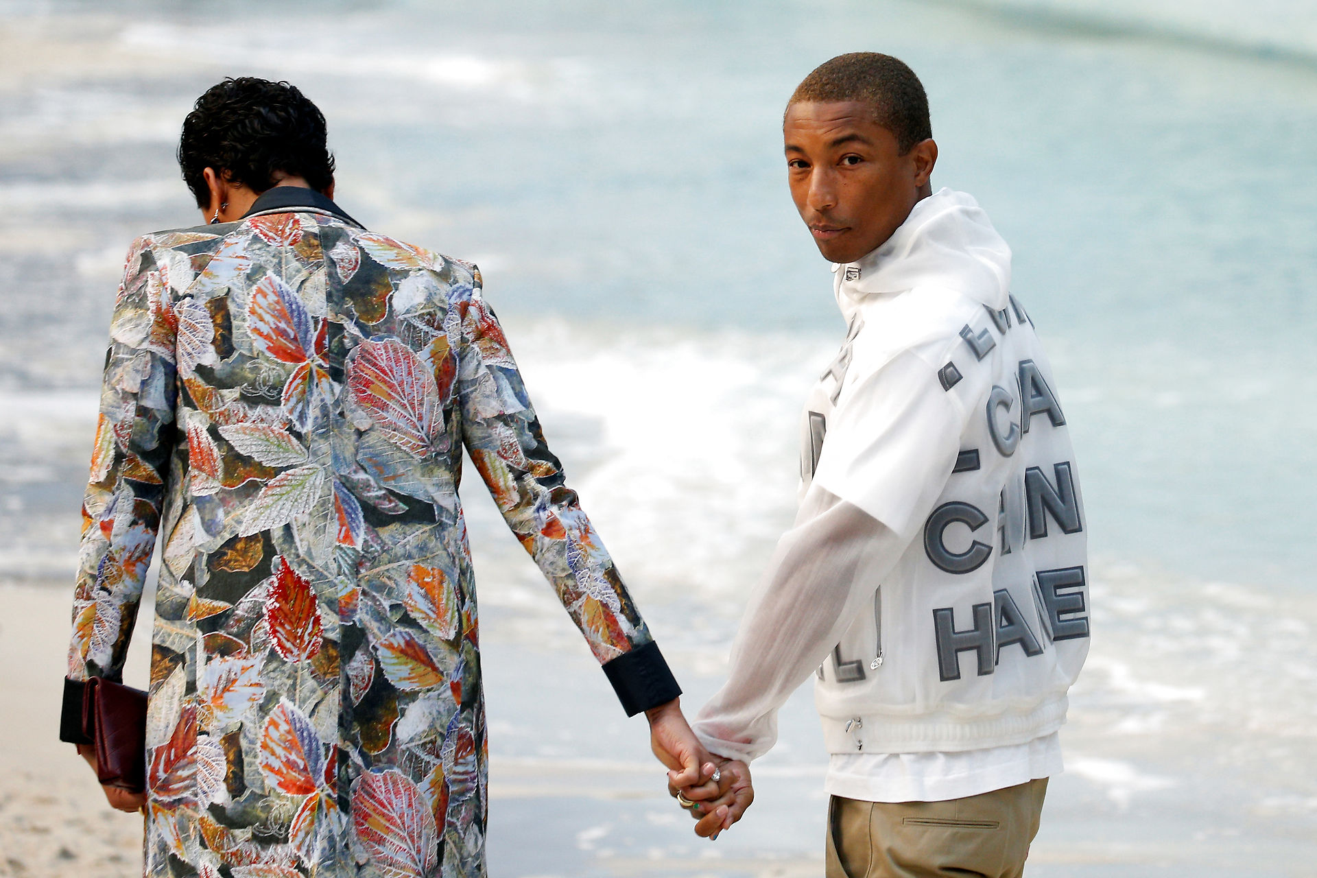 Pharrell Williams and Helen Lasichanh arrive to attend the Chanel Spring/Summer 2019 women's ready-to-wear collection show at the Grand Palais transformed as a beach scene during Paris Fashion Week in Paris, France, October 2, 2018. REUTERS/Stephane Mahe