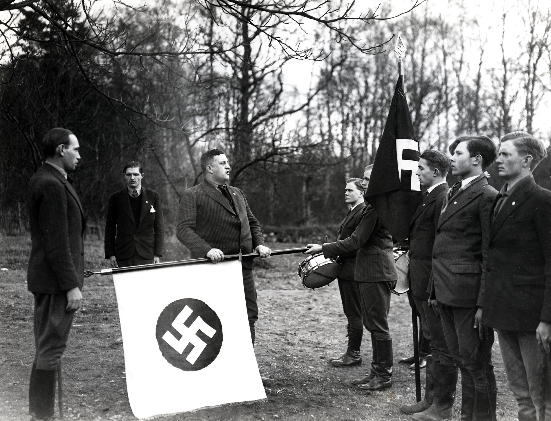DNSAP møde i Holte den 13 marts 1934. Frits Clausen med fanen