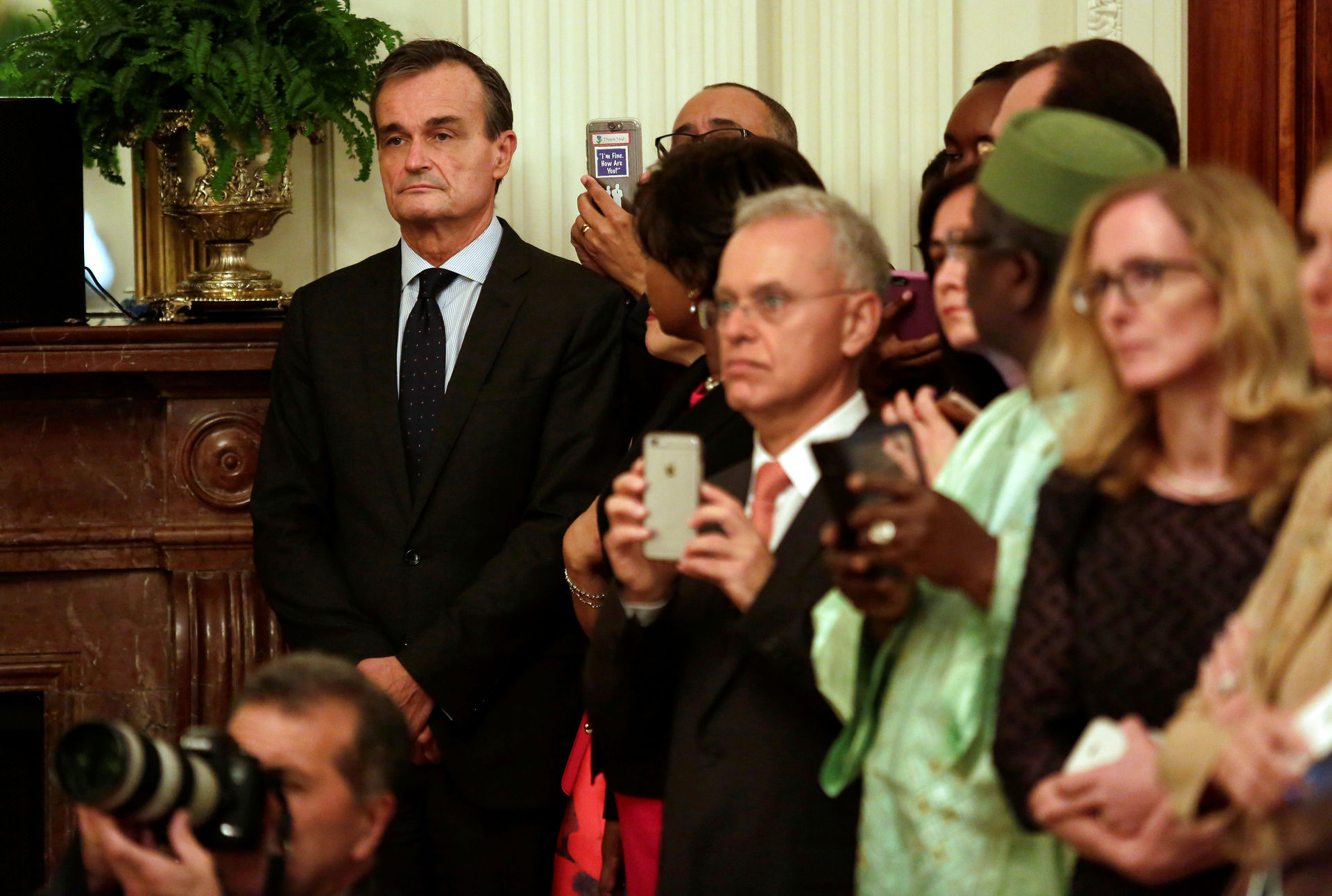 Gerard Araud (L), Ambassador of France to the United States, listens to U.S. President Barack Obama speaking about the Bastille Day truck attack in Nice at the Diplomatic Corps Reception at the White House in Washington, U.S., July 15, 2016. REUTERS/Yuri Gripas