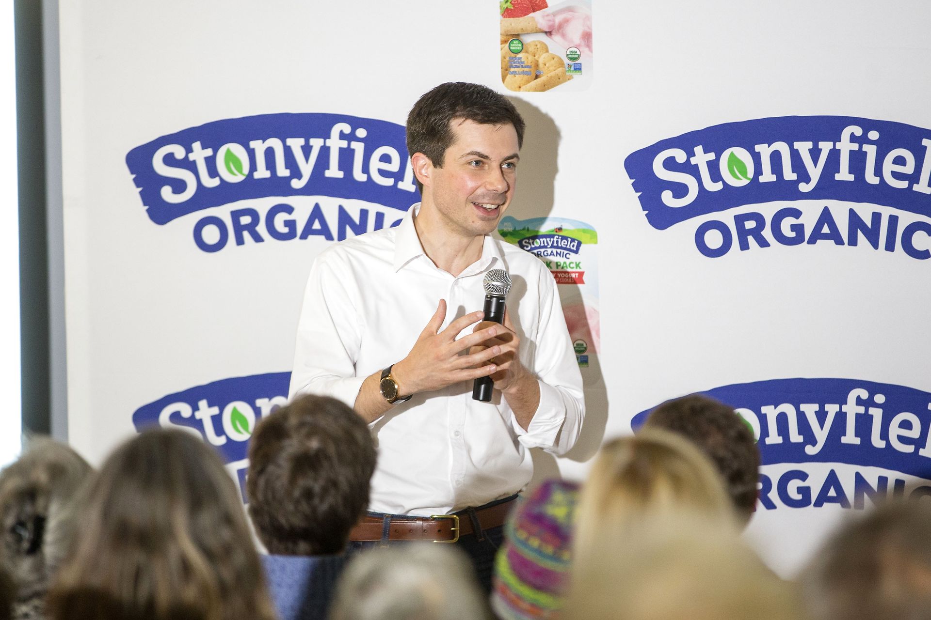 LONDONDERRY, NH - APRIL 19: Democratic Presidential candidate, South Bend Mayor Pete Buttigieg speaks during a campaign stop at Stonyfield Farms on April 19, 2019 in Londonderry, New Hampshire. Recent polls are showing Buttigieg is gaining ground with Democrats in the presidential nominating states of Iowa and New Hampshire. Scott Eisen/Getty Images/AFP == FOR NEWSPAPERS, INTERNET, TELCOS & TELEVISION USE ONLY ==