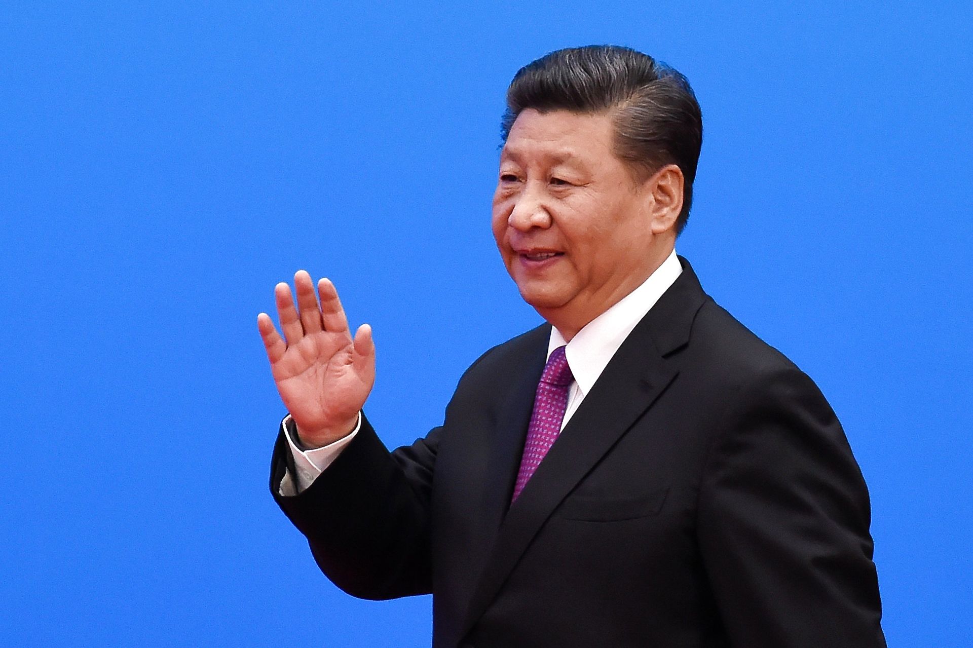 China's President Xi Jinping waves as he arrives for a press briefing at the end of the final day of the Belt and Road Forum at the China National Convention Centere at the Yanqi Lake venue outside Beijing on April 27, 2019. (Photo by WANG ZHAO / POOL / AFP)
