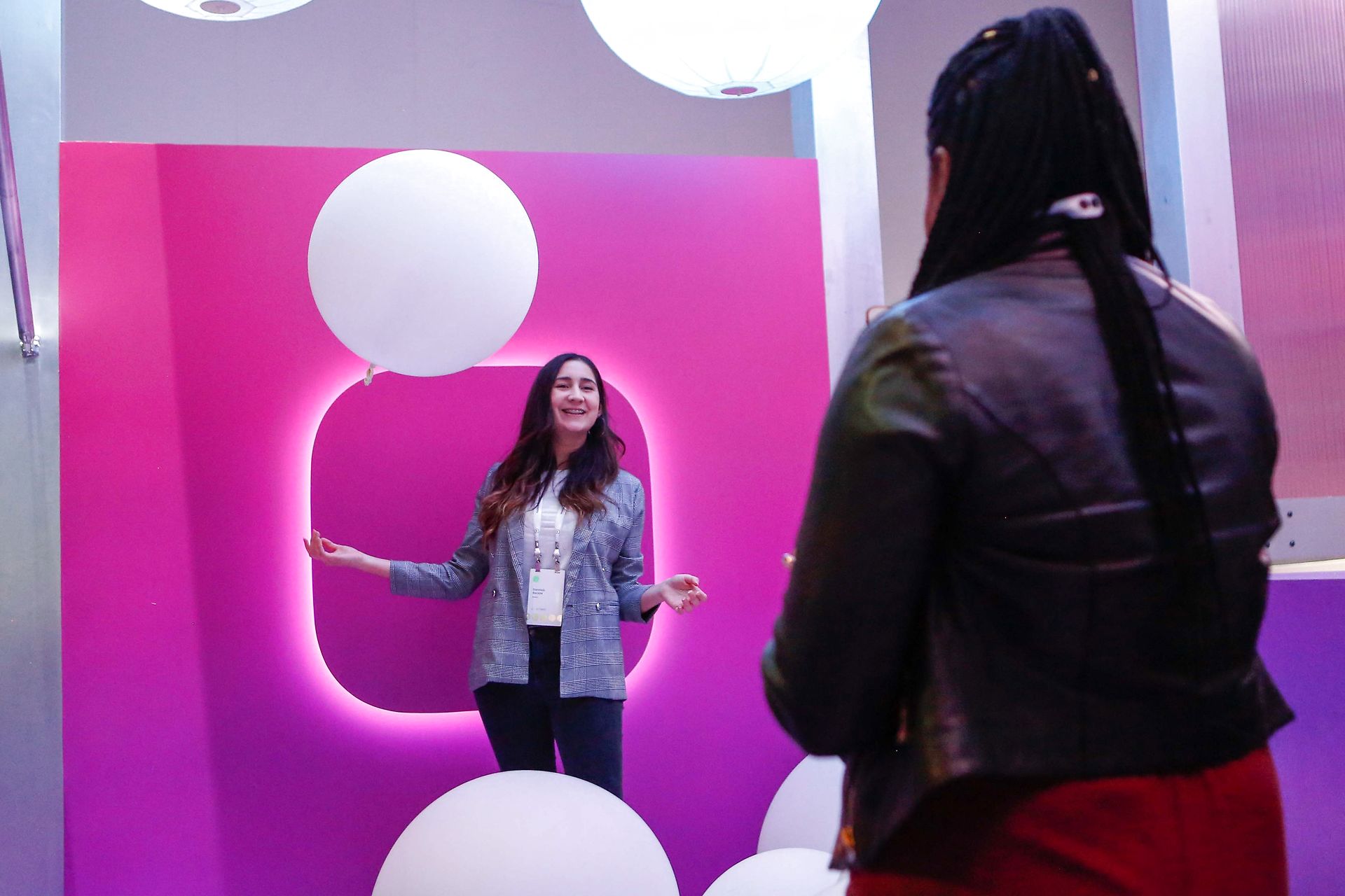 Attendees take selfies with balloons in an Instagram booth at the Facebook F8 Conference at the Facebook F8 Conference at McEnery Convention Center in San Jose, California, on April 30, 2019. - Got a crush on another Facebook user? The social network will help you connect, as part of a revamp unveiled Tuesday that aims to foster real-world relationships and make the platform a more intimate place for small groups of friends. (Photo by Amy Osborne / AFP)